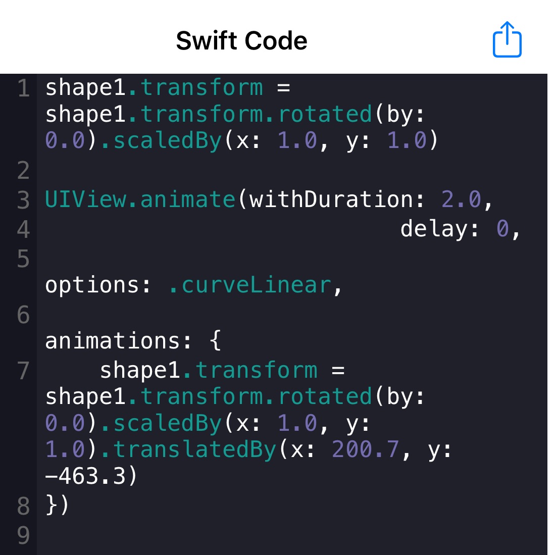 Once you've created a beautiful animation masterpiece, use it in your own app with the generated Swift code.